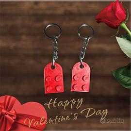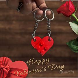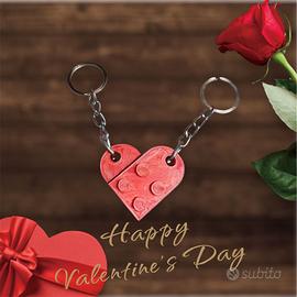 Questo portachiavi a forma di cuore, ispirato ai mattoncini LEGO®, si divide in due parti reali e funzionanti. Una metà per te, una metà per la tua persona speciale.