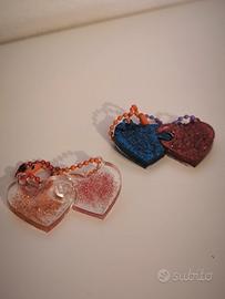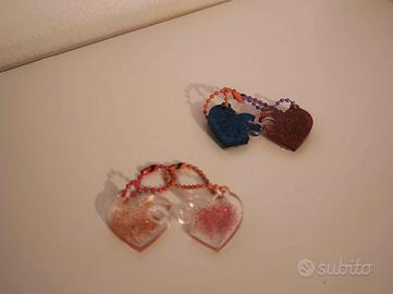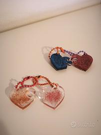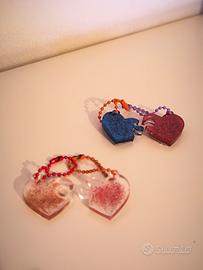 Portachiavi in resina fatti a mano. Set di due cuori (a incastro) per coppia. Possibilità di personalizzazione in differenti tonalità di colore.