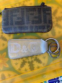 Portamonete Fendi originale lungo 14 cm. X6cm. Portachiavi D&G color oro 13cm. Vendo anche separati 100 portamonete 40 portachiavi