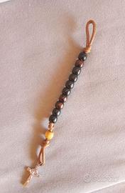Vendo portachiavi/decina artigianali con perle grandi di legno, croce san Benedetto o medaglia san Benedetto, vari colori 🌈