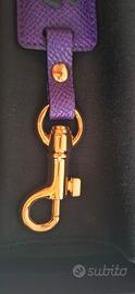 Il portachiavi è realizzato in vera pelle di vitello martellata, di colore viola con logo a contrasto.