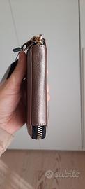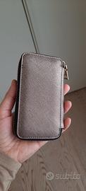 Portachiavi donna O Bag, modello ad astuccio, chiusura zip, color bronzo, in similpelle saffiano.