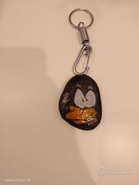 Portachiavi artigianale con personaggio Duffy Duck dipinto su una pietra levigata. Un accessorio unico per le tue chiavi.