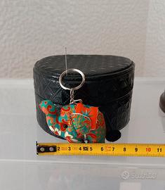 Portachiavi elefante in stoffa imbottita colore arancio e verde.