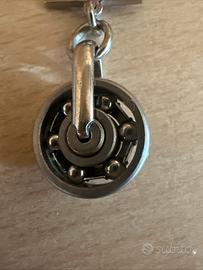 Presenta un ciondolo a forma di cuscinetto a sfera in miniatura.