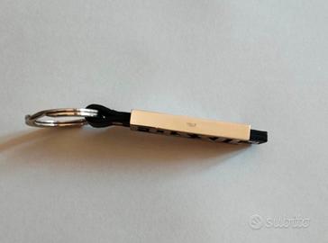Portachiavi in acciaio con logo su entrambi i lati e anello. Lunghezza 10 cm
