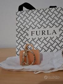 Portachiavi a forma di bauletto color rosa cipria, marca Furla, nuovo mai usato, in confezione originale e completo di borsina.
