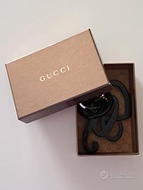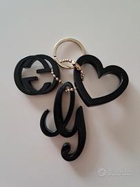 Vendo portachiavi / ciondolo Gucci, in resina nero con catenella e anello in metallo dorato.