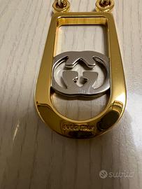 Vendo portachiavi Gucci autentico per inutilizzo. È un portachiavi degli anni ‘80 in metallo color oro. Privo di confezione originale.