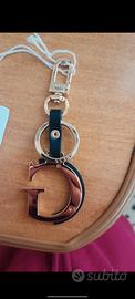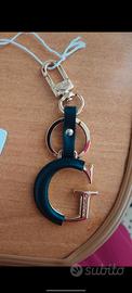 Portachiavi Guess, in pelle nera, dorato. Nuovo con cartellino