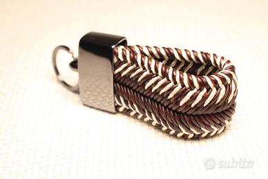 realizzato in vero cuoio colore testa di moro e bianco con accessori in metallo colore canna da fucile.