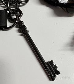 Portachiavi STUSSY in metallo e pelle nera, nuovo mai utilizzato, pezzo introvabile.
