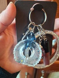 portachiavi In Resina Con ciondoli di varie forme e mini lucidalabbra. potrebbe presentare lievi difetti essendo fatto a mano