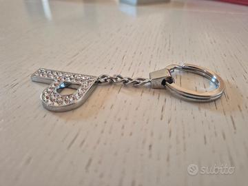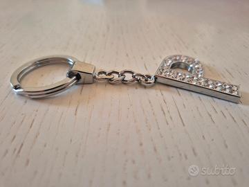 Portachiavi in metallo lettera P con strass. Dimensioni lettera cm 3,5 x 2,5. Lunghezza totale portachiavi cm 9,5.