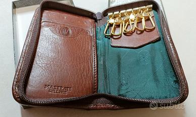 Raro e unico portachiavi Maserati Sellerie originale degli anni ’80, realizzato in vera pelle colore marrone.