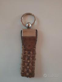 Portachiavi vintage in pelle intrecciata, con dettagli in metallo. Un accessorio elegante e particolare, perfetto per chi ama lo stile classico. -Realizzato in pelle marrone e beige. -Presenta un leggero segno del tempo, ma è ancora in buone condizioni.
