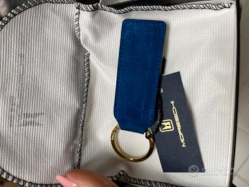 Portachiavi Blu in camoscio e pelle marca moreschi made in Italy, nuovo con cartellino