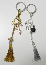 handmade con nappe e cristallini, quello color oro con cristallo austriaco placcato argento, e quello argento con piccolo cuore in ematite (pietra dura) e cuore in cristallo e un charm campanellino. Lunghezza 13 cm. Possibilità di moschettoni più grandi e aggiunta di anello portachiavi. PEZZI UNICI. Ottima idea regalo. Ritiro Roma o dintorni Viterbo. Possibilità di spedizione