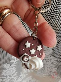 Portachiavi realizzato a mano con pasta modellabile Fimo. Texture con effetto biscotto con aggiunta di ciuffo di pasta.