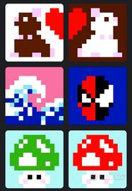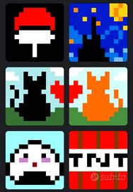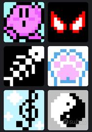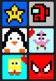 Set di portachiavi in stile pixel art, perfetti per personalizzare zaini o chiavi. - Design ispirato a personaggi iconici. - Realizzati con cura. - Ottima idea regalo. L'immagine puoi fornirmela tu oppure puoi sceglierne tra quelle nelle foto. I colori sono variabili, senza differenza nel prezzo. PREZZI • Portachiavi singolo: €3 • Portachiavi doppio: €5 • 4 portachiavi + 1 omaggio: €10 Nel caso se ne volessero prendere di più, il prezzo è trattabile.