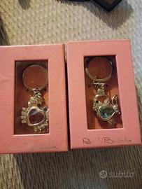 Set di due portachiavi a forma di tartaruga e granchio, decorati con strass.