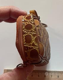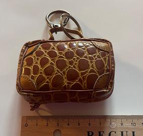 Portachiavi a forma di piccola valigetta con finitura effetto coccodrillo.