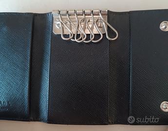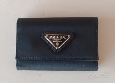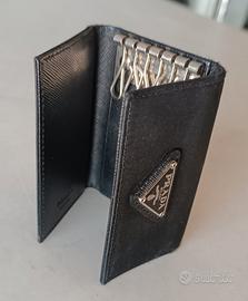 Portachiavi PRADA Vintage Nuovo mai usato Materiale:Tipicamente realizzato in un mix di pelle Saffiano(nota per la sua trama graffiata e resistente) e nylon Tessuto. Design:Presenta l'iconico logo a triangolo in metallo smaltato sulla parte frontale. Interno:All'interno si trovanosei ganci metallici per organizzare le chiavi e piccole tasche laterali per tessere o banconote ripiegate. Chiusura:Dotato di un sistema a doppio bottone a pressione per una chiusura NON SPEDISCO....... per favore contattatemi solo per ritiro a mano.... grazie