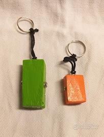 Due portachiavi Robot in legno . Fatti a mano con legno riciclato, bulloni e viti .