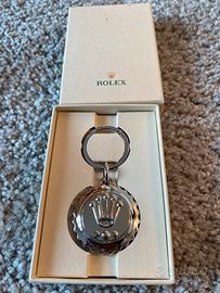 Portachiavi Rolex in acciaio nella sua confezione originale come da foto. Marchiato Rolex anche sull’anello portachiavi.