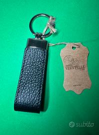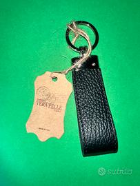 Portachiavi in vera pelle italiana in colore nero Nuovo con cartellino. Unisex