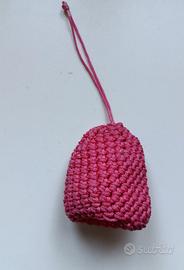Questo adorabile portachiavi è realizzato interamente a mano con la tecnica del Macramè, utilizzando un cordino resistente di un vivace colore rosa brillante (glitterato). La forma a sacchetto arrotondato non è solo bella, ma è anche super pratica! Puoi inserire una o più chiavi al suo interno per proteggerle e, cosa più importante, per evitare che graffino lo schermo del tuo telefono o gli oggetti nella borsa.