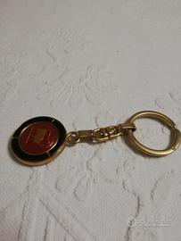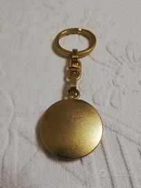 Portachiavi vintage con ciondolo raffigurante il segno zodiacale del Toro. Di metallo dorato. Il ciondolo presenta, intorno al toro dorato, i colori rosso e nero. In perfette condizioni, mai utilizzato.