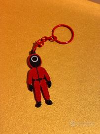 Direttamente dal gioco più spietato della TV! Questo portachiavi raffigura uno dei misteriosi soldati in tuta rossa di Squid Game, con il classico look inquietante e la maschera simbolo del potere.