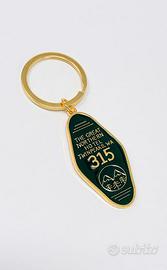 Portachiavi in metallo dorato e smaltato.