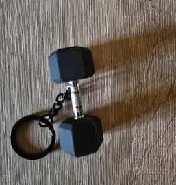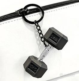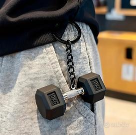 Portachiavi a forma di manubrio da palestra, ideale per gli appassionati di fitness. - Design a forma di manubrio. - Dettaglio 10KG inciso. - Materiale: metallo e plastica.