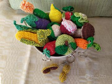 Simpatici portachiavi di diverse verdure fatti ad uncinetto in cotone e riempiti di gommapiuma.