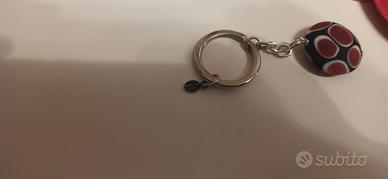 portachiavi in vetro di murano e acciaio modello ciondolo motivo a pois made in Italy