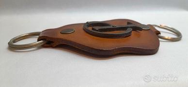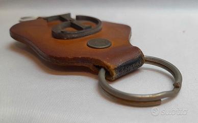 Portachiavi vintage artigianale in cuoio massiccio con l'iniziale "P" in metallo, risalente agli anni '80.