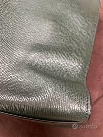 Portadocumenti Church”s in pelle di vitello verde con dettagli color argento, tasca interna con zip e scomparto unico, chiusura con fermaglio, misure altezza 30 cm, larghezza cm 39 profondità cm 7