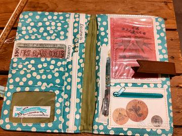 Bellissimo portadocumenti da viaggio per passaporto tessere soldi monete penna...mai usato, molto carino!