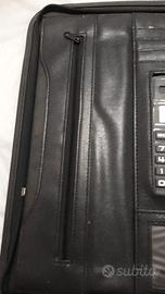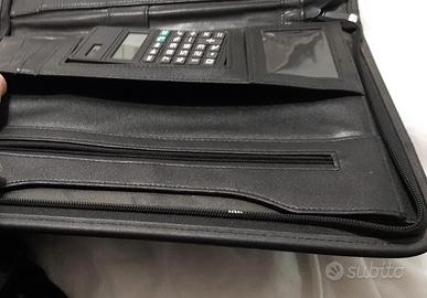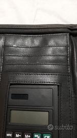portadocumenti formato A4 con chiusura cerniera - Tasca interna per documenti. - Scomparti per carte e biglietti. - Calcolatrice integrata (la calcolatrino non è funzionante). - Finestra trasparente per documenti d'identità o tessere. una tasca ha uno strappo (vedi foto) e la copertura esterna è rovinata (vedi foto) misure 25x34 cm c.ca SI VALUTANO OFFERTE