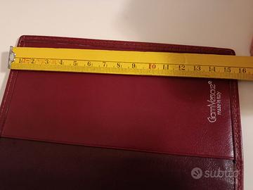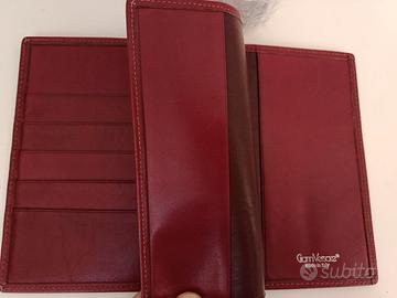 PORTADOCUMENTI A LIBRO IN PELLE COLORE BOURDEAUX CON DIVERSI SCOMPARTI. MARCA GIANNI VERSACE CON NOME STMPATO SULLA PELLE. NO CARTELLINO. TUTTO COMPLETAMENTE FODERATO ALL'INTERNO. NON CI SONO ZIP. SI APRE COME UN LIBRO. ALCUNI ANGOLI HANNO LEGGERI SEGNI DI USURA. MISURE APERTO; 22CM X 16 CM MISURE DA CHIUSO; 11,5 CMX 16 CM