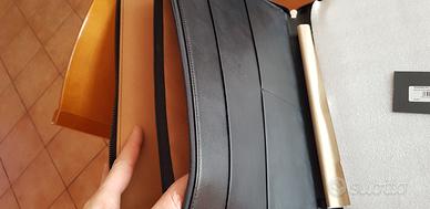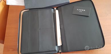 portadocumenti in pelle nera multitasche: porta blocco+ portapelle+ portadocumenti + 3 tasche portaoggetti +1 tasca porta ipad , con chiusura a cerniera , marchio Fedon .misure 34cm.x26,5cm.x2cm. .