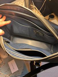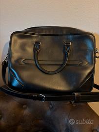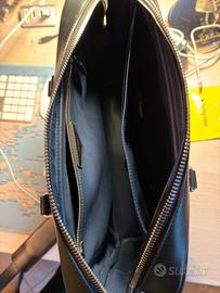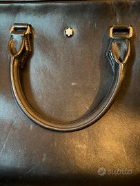 Il Portadocumenti Montblanc Meisterstück è un compagno elegante per i viaggi di lavoro. Realizzato in una nuova tipologia di pelle nera estremamente lucida, presenta impunture, cursori delle cerniere e manici che richiamano la forma di un pennino, la vera essenza di Montblanc. Una versione più grande del logo impreziosisce la borsa. I manici superiori in pelle, la tracolla in pelle amovibile e il sistema satellite offrono diverse opzioni di portabilità, mentre le tasche interne e la tasca posteriore esterna assicurano praticità.