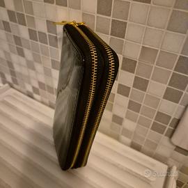 Portafoglio donna Noname in vernice con doppio scomparto zippato cerniera e terminali dorati molto comodo e capiente nuovo mai usato.