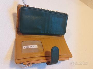 vendo portafogli Carpisa, nuovo, mai usato in perfette condizioni. colore giallo senape e verde bottiglia con inserto centrale removibile.