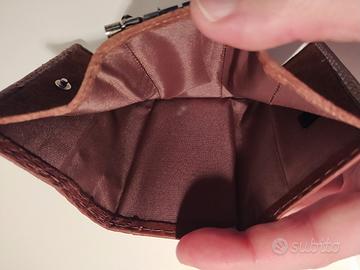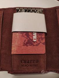 Portafogli Charro marrone in pelle di rettile, con sei piccoli ganci all'interno.