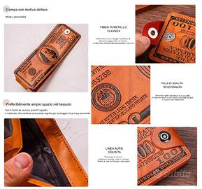 1 - Design unico: questo portafoglio da uomo ha un design unico con motivo da $ 100, che attira l'attenzione. Come tuo accessorio, ti renderà sicuramente unico tra amici o colleghi.