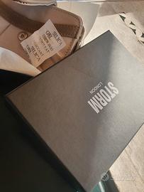 Portafoglio/portadocumenti/portamonete super compatto (misura 13x9) ma estremamente funzionale e capiente (sbalordisce quanto può contenere con dimensioni così contenute). Acquistato 2 anni fa a Londra e non utilizzato (ne avevo presi 2, ma ne utlizzo solo 1 in quanto praticamente inalterabile). Pagato 69 euro! In pelle e tessuto pesante di qualità superiore. Noto brand londinese "Storm London". Nuovo con confezione (scatola, protezione interna, cartellino certificazione e sacchetto gel antiumidità). Colore beige scuro e tortora. Dotato di: 1 tasca esterna con chiusura clip a pressione, 2 aperture distinte, la prima a portafoglio con all'interno 5 scomparti per carte di credito/tessere ecc di cui 1 con frontale trasparente, 2 tasche laterali per documenti e/o altro, 1 scomparto per tutta la lunghezza per banconote e/o altro. La seconda apertura è con cerniera, si apre a "fisarmonica ed è internamente divisa in 2 tasche (portamonete e/o altro). Totale scomparti/tasche 12! Ultima foto esempio di modello attualmente in vendita con relativo costo (da considerare che è un modello di linea inferiore in quanto solo portadocumenti). Perfetto per un regalo, vero affare!