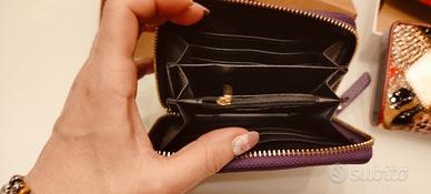 vendo due portafogli donna nuovi 4€ cadauno quello viola ha l'iniziale T